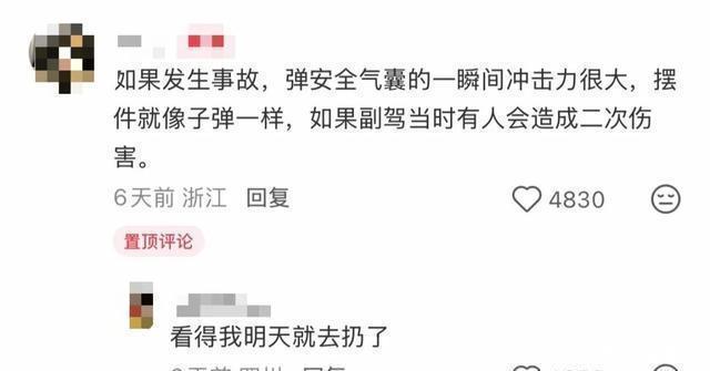 这位网友还在评论区补充说:如果发生事故,弹安全气囊的一瞬间冲击力很大,摆件会像子弹一样,给车里的人造成伤害。